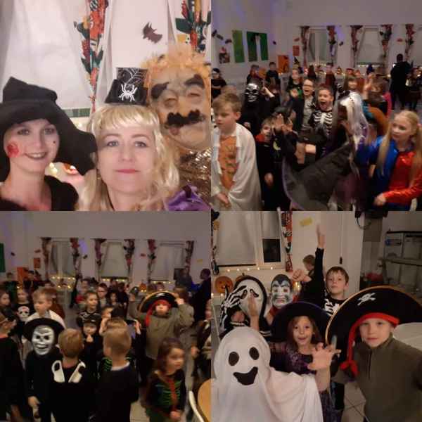 Był konkurs na najładniejszą dynię, najstraszniejsze przebranie oraz makijaż. Uczniowie zrobili mumię z nauczyciela, łowili jabłka pływające w wodzie, tańczyli cha-cha slide. Było dużo śmiechu i radości.