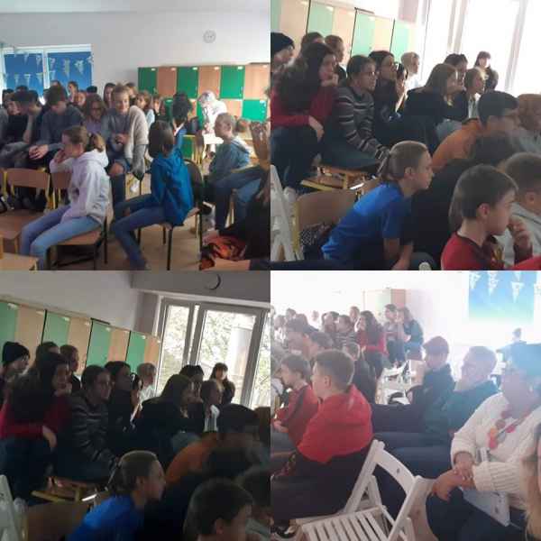 29 października w naszej szkole odbyło się spotkanie z panią Pauliną Bruszewską, założycielką i prezes Fundacji wspierającej uczniów w olimpiadach społecznych Zwolnieni z Teorii. Uczniowie klas 7 i 8 wraz z niektórymi nauczycielami wzięli aktywny udział w bardzo ciekawym spotkaniu na temat projektów społecznych, w które mogą się zaangażować. Padły pytania o finanse, współpracę z innymi, czas trwania projektów oraz wiele innych. Wszyscy chętni wzięli się do pracy i już niedługo zarejestrowali swoje grupy projektowe. Bardzo dziękujemy jednemu z rodziców za inspirację.
